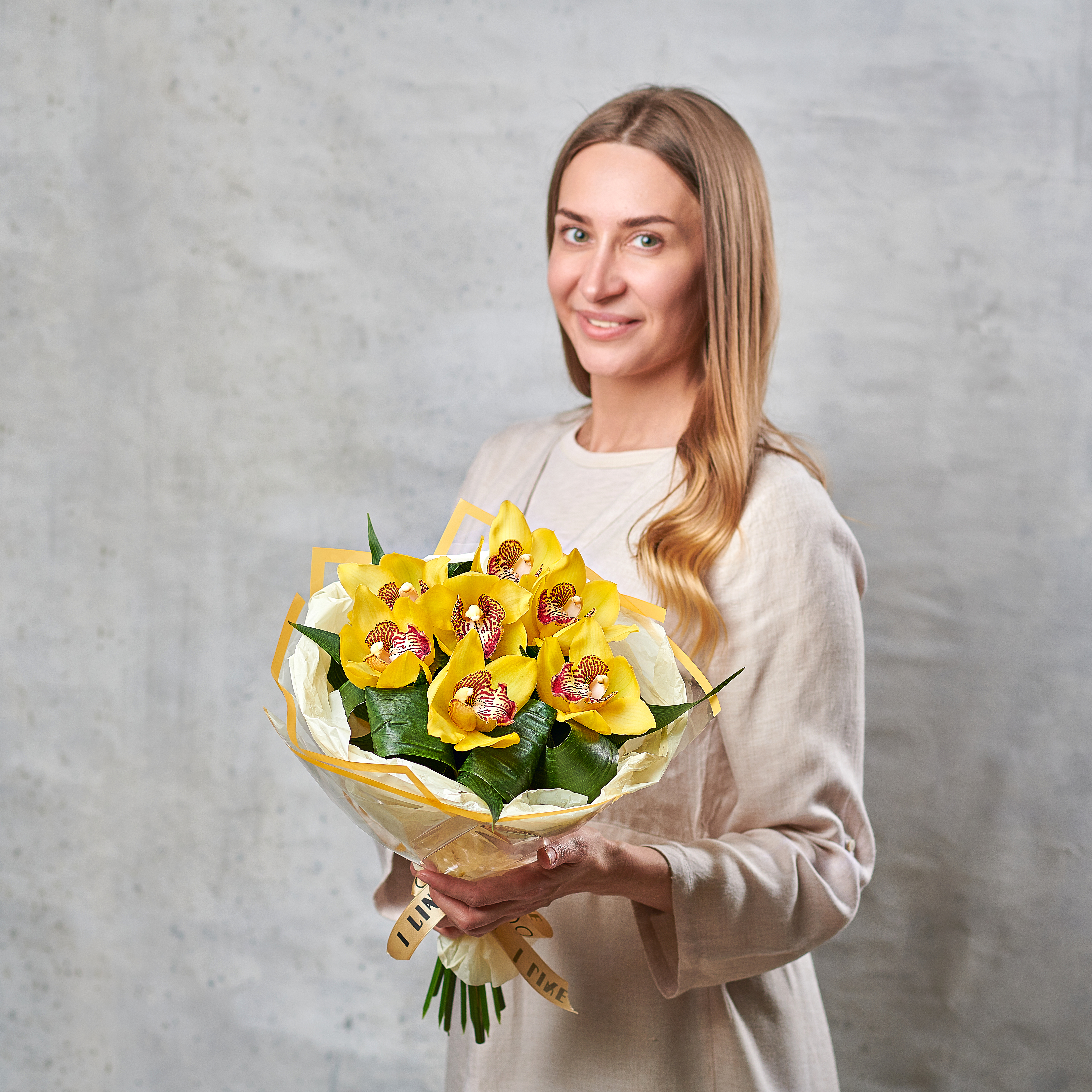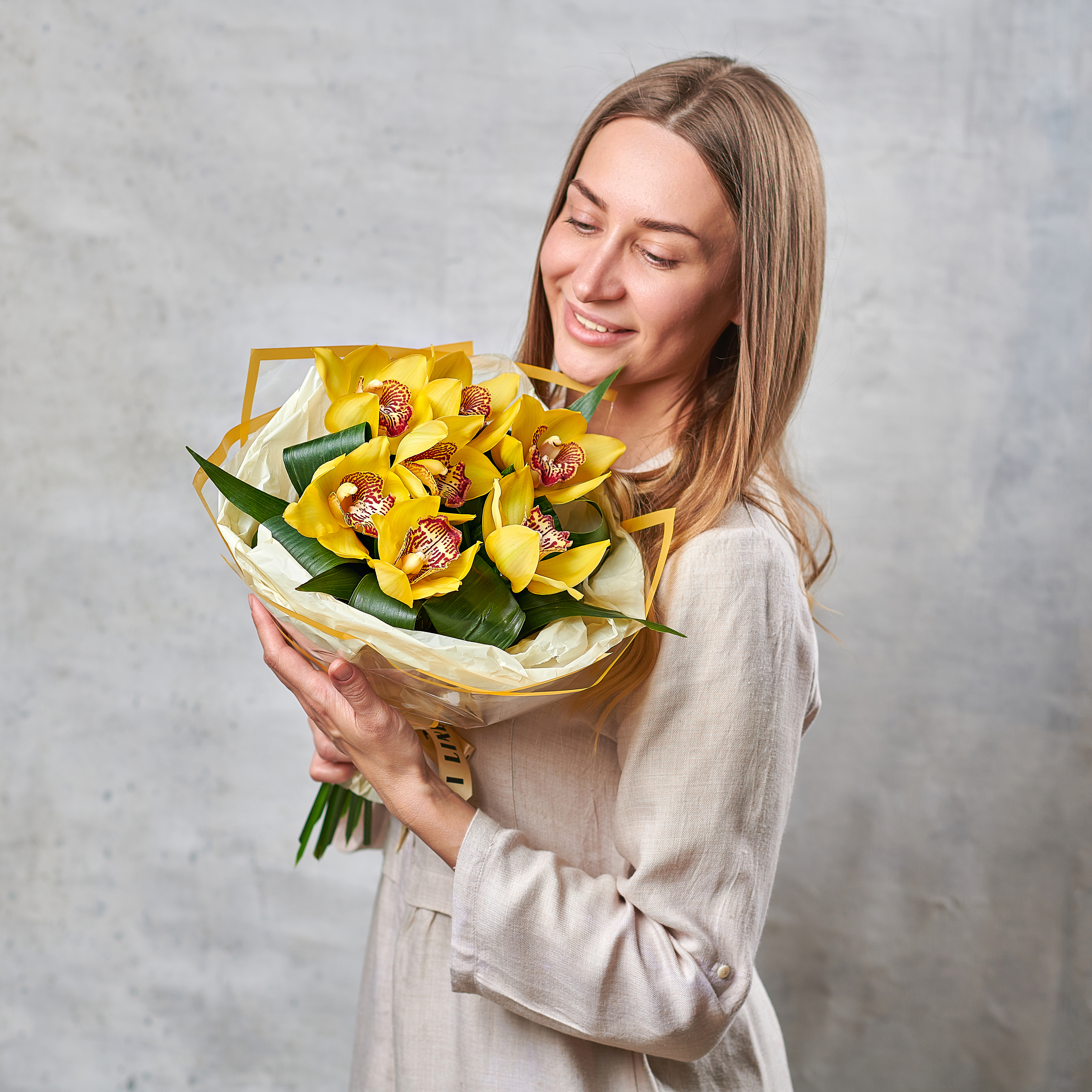 Букеты с орхидеями ценились издревле. Орхидея - символ любви и совершенства. Люди Востока считают этот цветок идеалом красоты. Возможны небольшие изменения элементов. Общий вид и композиция букета будет сохранена.
