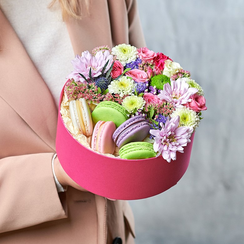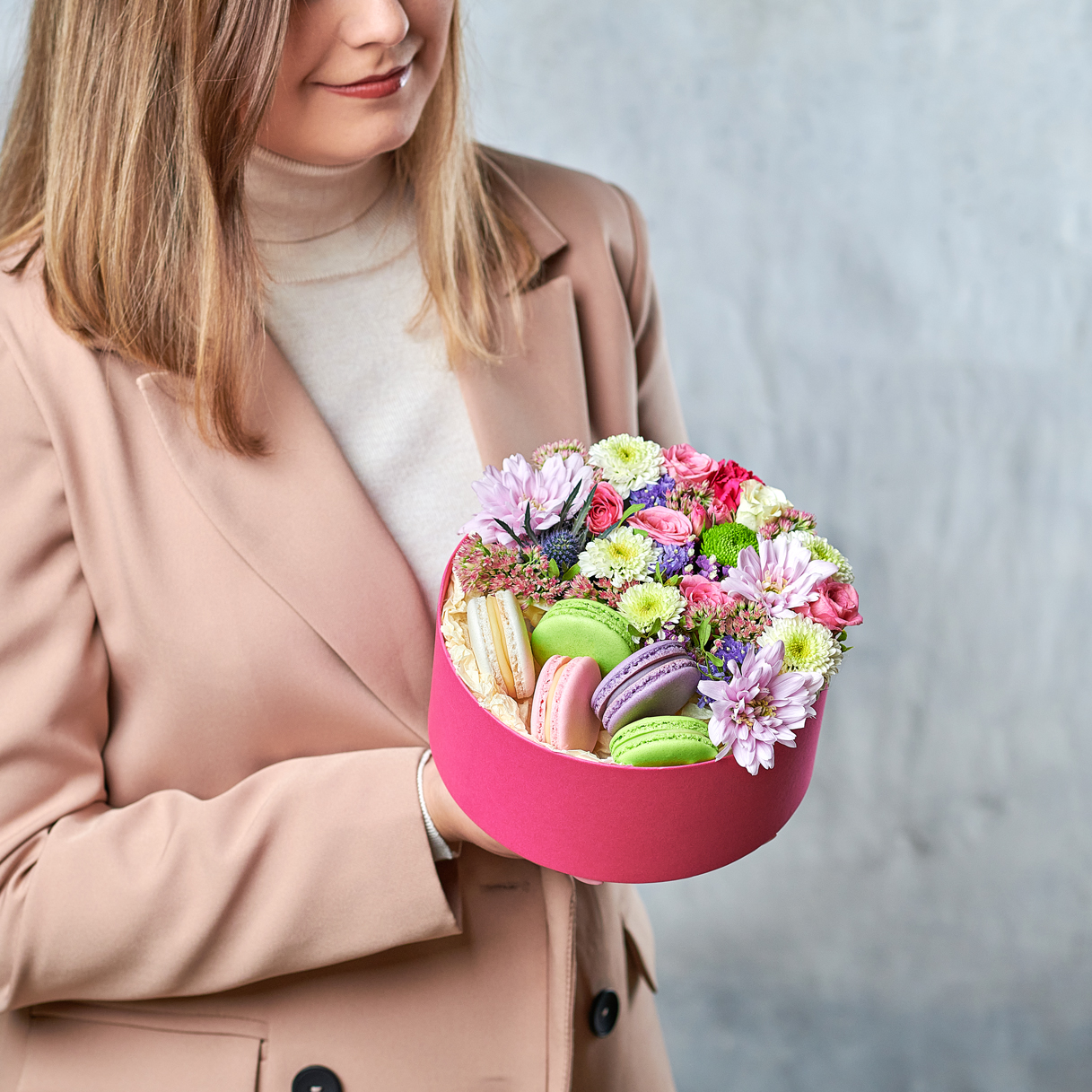 Для любителей дарить задорное настроение, новые эмоции и впечатления. Яркие детали зарядят энергией, сладкий сюрприз дополнит стаканчик кофе, а легкий цветочный аромат сделает день по-настоящему особенным. Возможны небольшие изменения элементов. Общий вид и композиция букета будет сохранена.