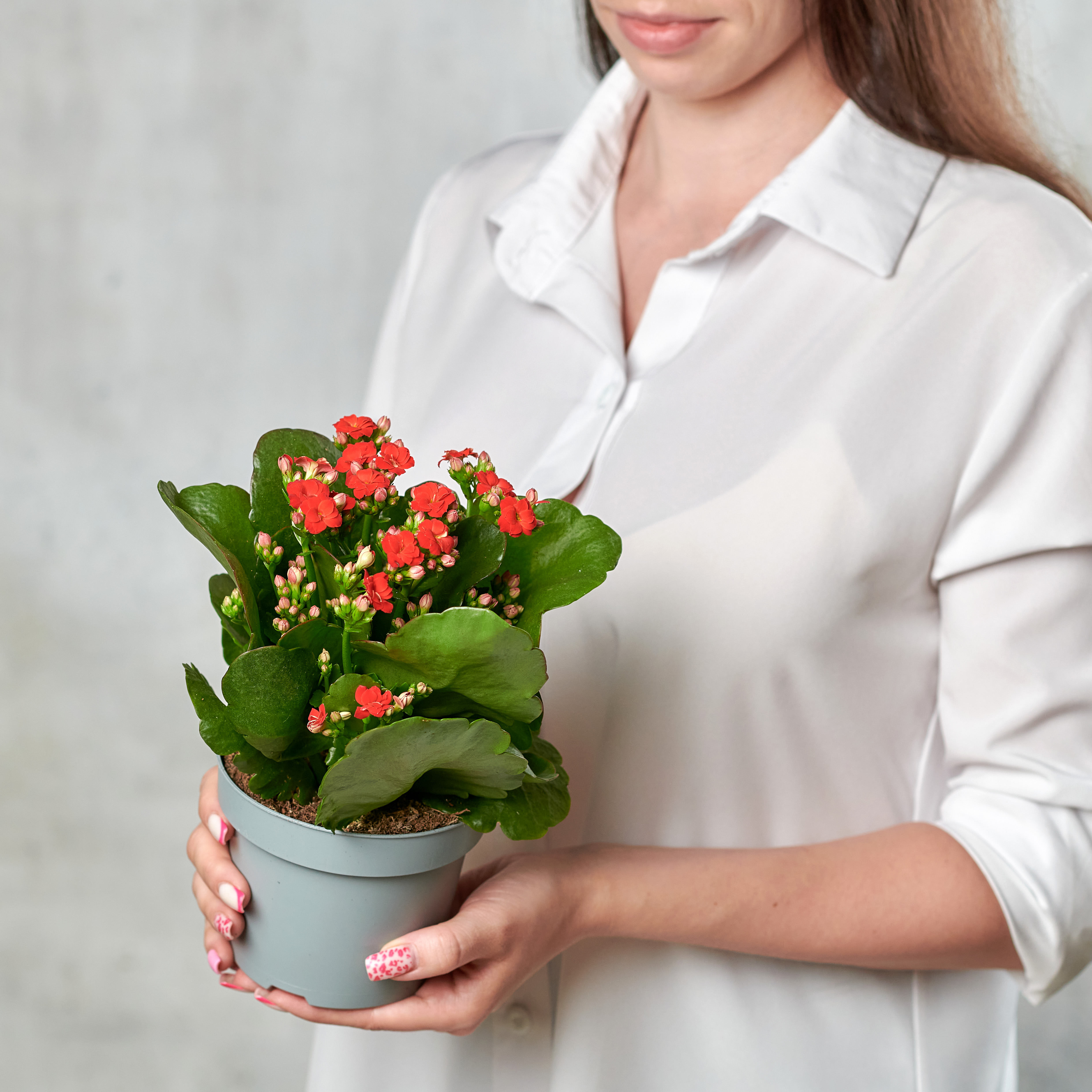 Каланхоэ - один из самых любимых и неприхотливых комнатных растений среди наших клиентов. Каланхоэ в азиатской культуре переводится как "что падает, то растет", соответственно, в доме каланхоэ приобретает символику стойкости и выносливости. Каланхоэ светолюбивое растение, с которым справятся даже новички. Можно использовать грунт, почву для кактусов.Растение может находиться продолжительное время без воды, поливать стоит по мере высыхания почвы. Температура особо важна в зимнее время от +10 до +15 градусов, а вегетативный период отлично переносится от 20 до 25 градусов. Возможны небольшие изменения элементов. Общий вид и композиция букета будет сохранена.