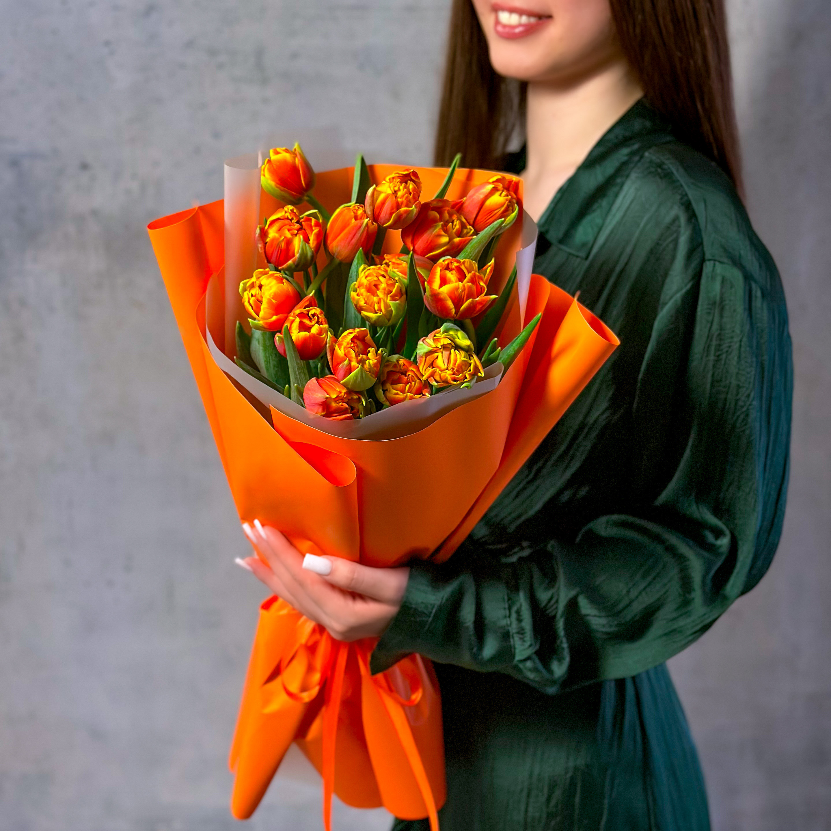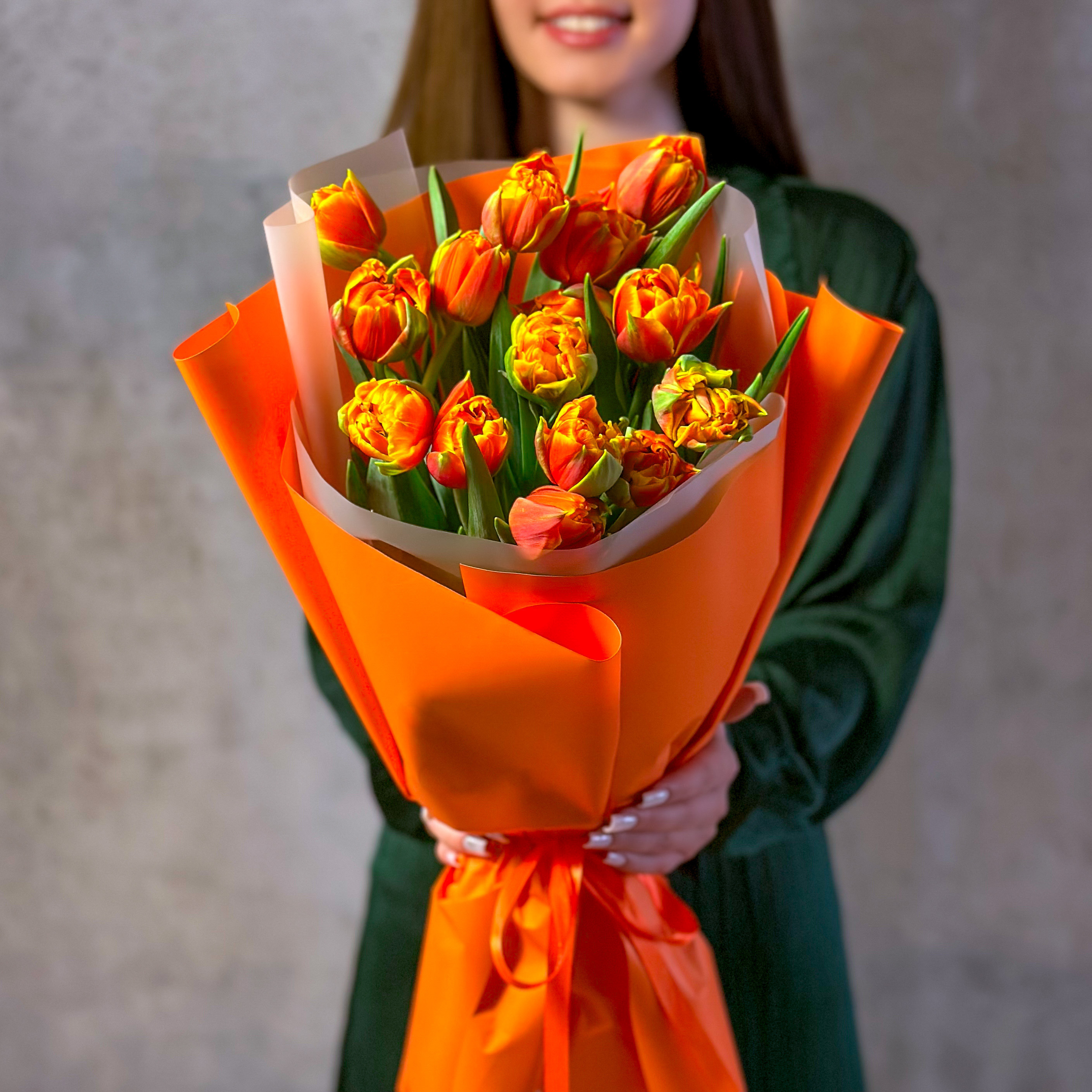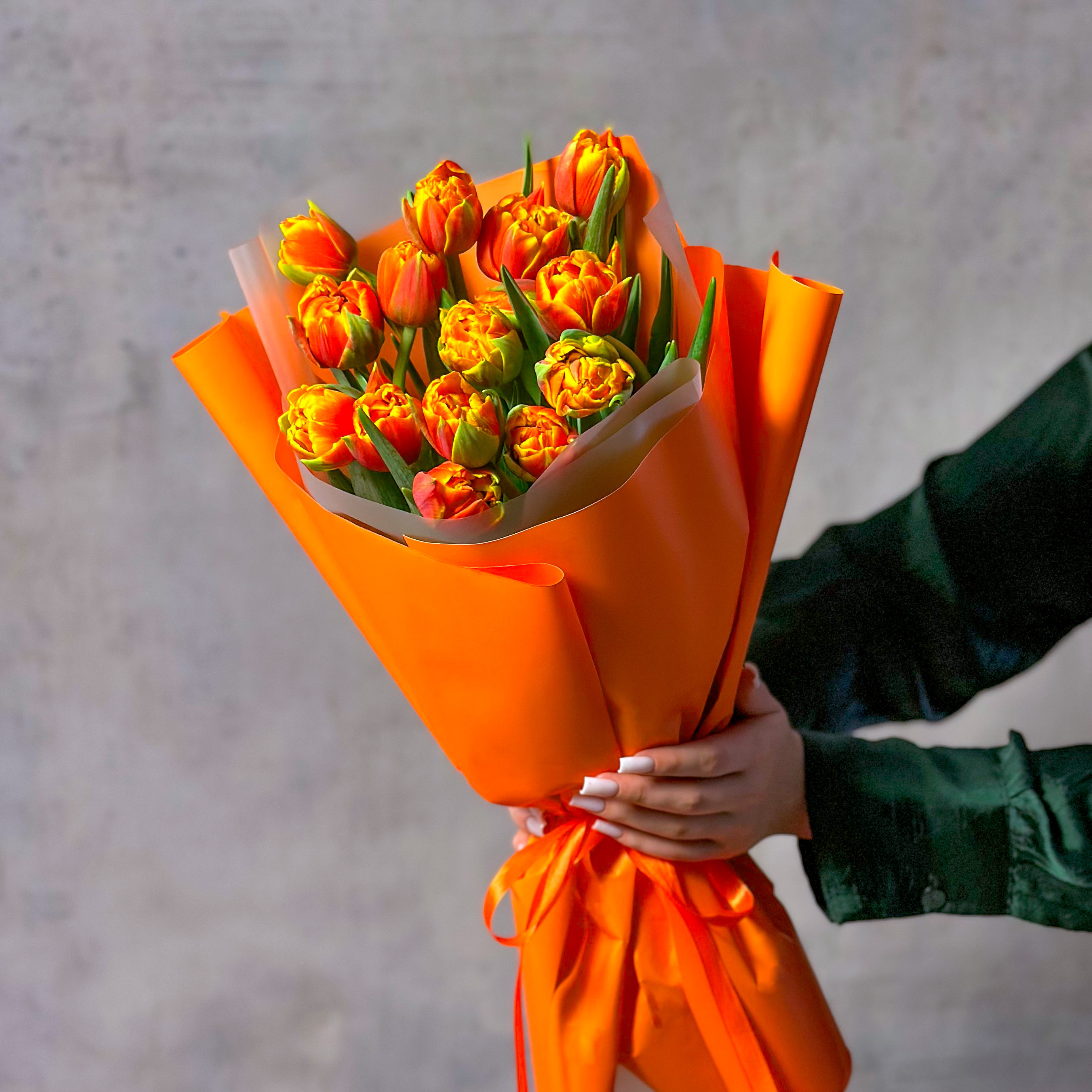 Букет из 15 оранжевых тюльпанов